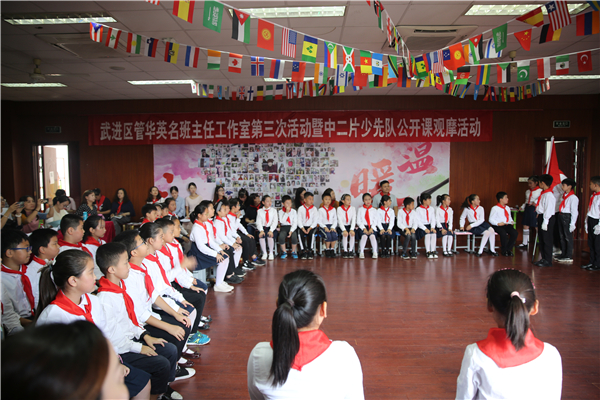 武进区管华英名班主任工作室第三次活动暨中二片少先队公开课观摩活动在清英外国语学校举行。此次中队活动的主题是“传承红色基因 争做强国少年”。广东省校长团、区名班主任工作室领衔人管华英、中二片片总丁娴老师和全体中二片辅导员以及清英所有辅导员观摩了此次活动。