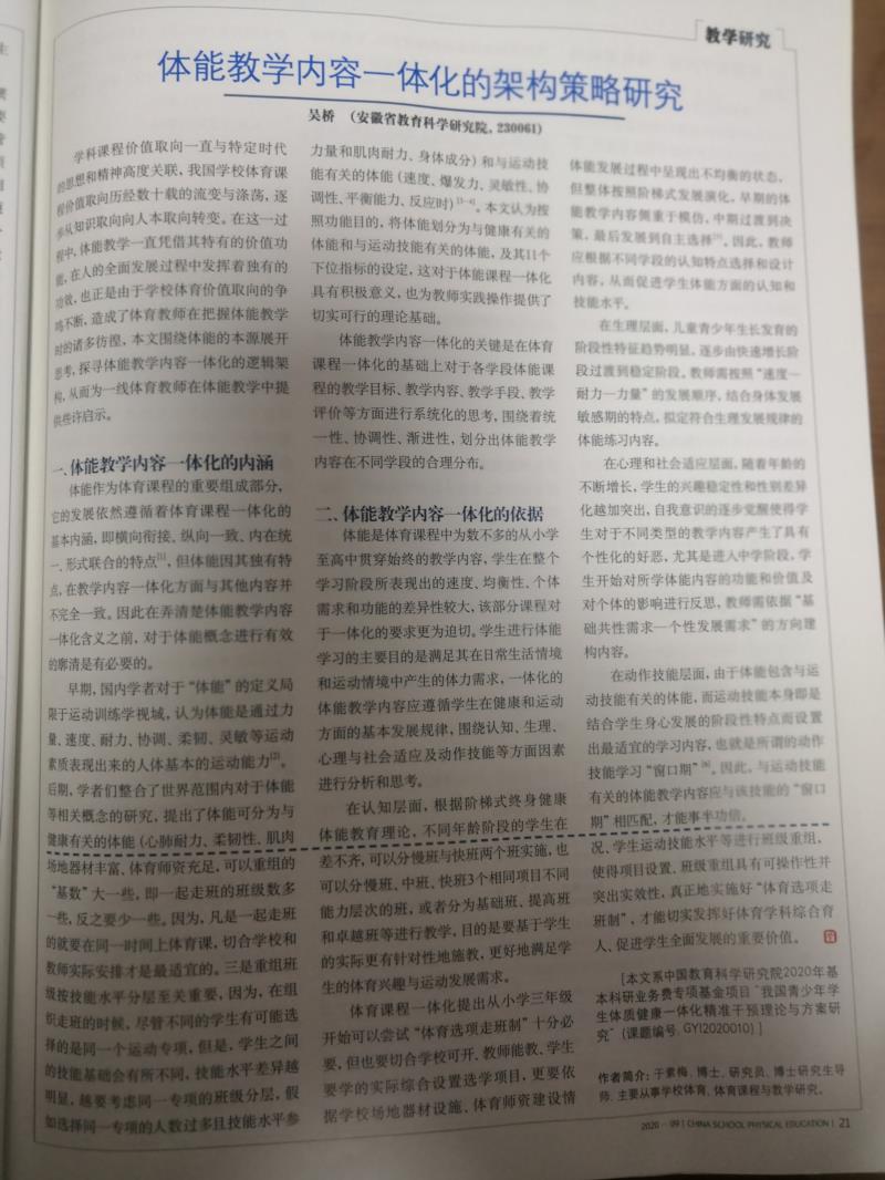 体能教学内容一体化的架构策略研究
