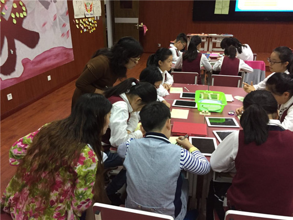 在短短的四十分钟内,白老师将自己的教学理念与技术应用充分展示,学生是课堂的主人,自主学习成为主旋律:在研究了解学生的基础上,孩子们巧妙运用英语学习软件、截图软件,自主学习、深入探究。在以小组为单位的学习共同体中,从英语学习到现场展示,孩子们很快从中感受到了快乐。白老师带领学生利用美篇、电子书、思维导图、WPS等软件的使用,既让学生深入了解了课文,又让学生掌握了学习文本的方法,学生的综合能力不断提升;白老师引领学生利用平板技术进行个性化学习分享,利用平板拍照、推送技术、及时探讨学习成果。数字化课堂既有自主学习方式的传承,又有个性化学习的创新,师生互动、生生互动得到充分体现。信息技术的运用在重难点的突破上发挥了重要作用。