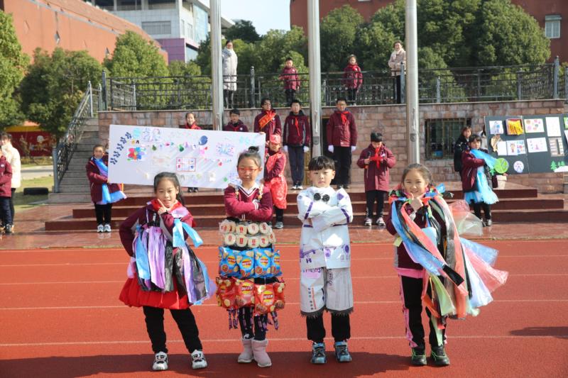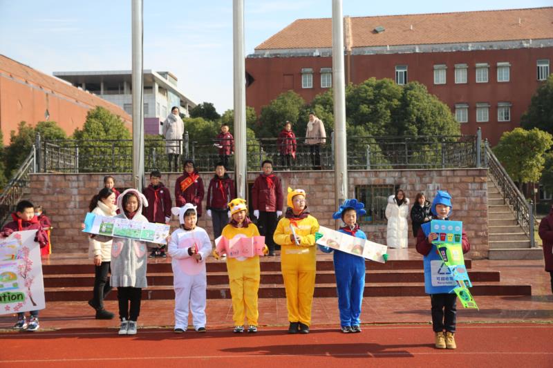 本次学科周以 “Heading for the world”为主题,分年级开展活动。各年级的主题秀活动,在升旗仪式上精彩亮相。一年级的学生们带来歌曲表演“Finger family”,他们的歌声悦耳动听,表演更是生动活动,可爱至极。二年级的中外学生们向全校师生做英文自我介绍,一句“Do you want to be my friends?”展现出他们大方自信的模样。三年级的8名学生穿着8件创意自制服装,将升旗台变成了舞台,走出了十足的模特范儿,集体的一句口号“To do the most, to show the best. ”更是赢得大家的阵阵掌声。四年级的学生们拿着自己的立体绘本上台,装扮成绘本中的小人物或者小动物,惟妙惟肖,颇有一番故事情景浮现的感觉。五年级的学生穿着动物服饰,用思维导图,学习小报,趣味作文,向大家展示出他们的Colourful friends和colourful life。六年级的学生们带着他们呼吁环境保护的英语文章以及自制的垃圾分类桶,带领全校师生喊出了:“It's my duty to sort rubbish. It's my duty to protect the environment”口号。