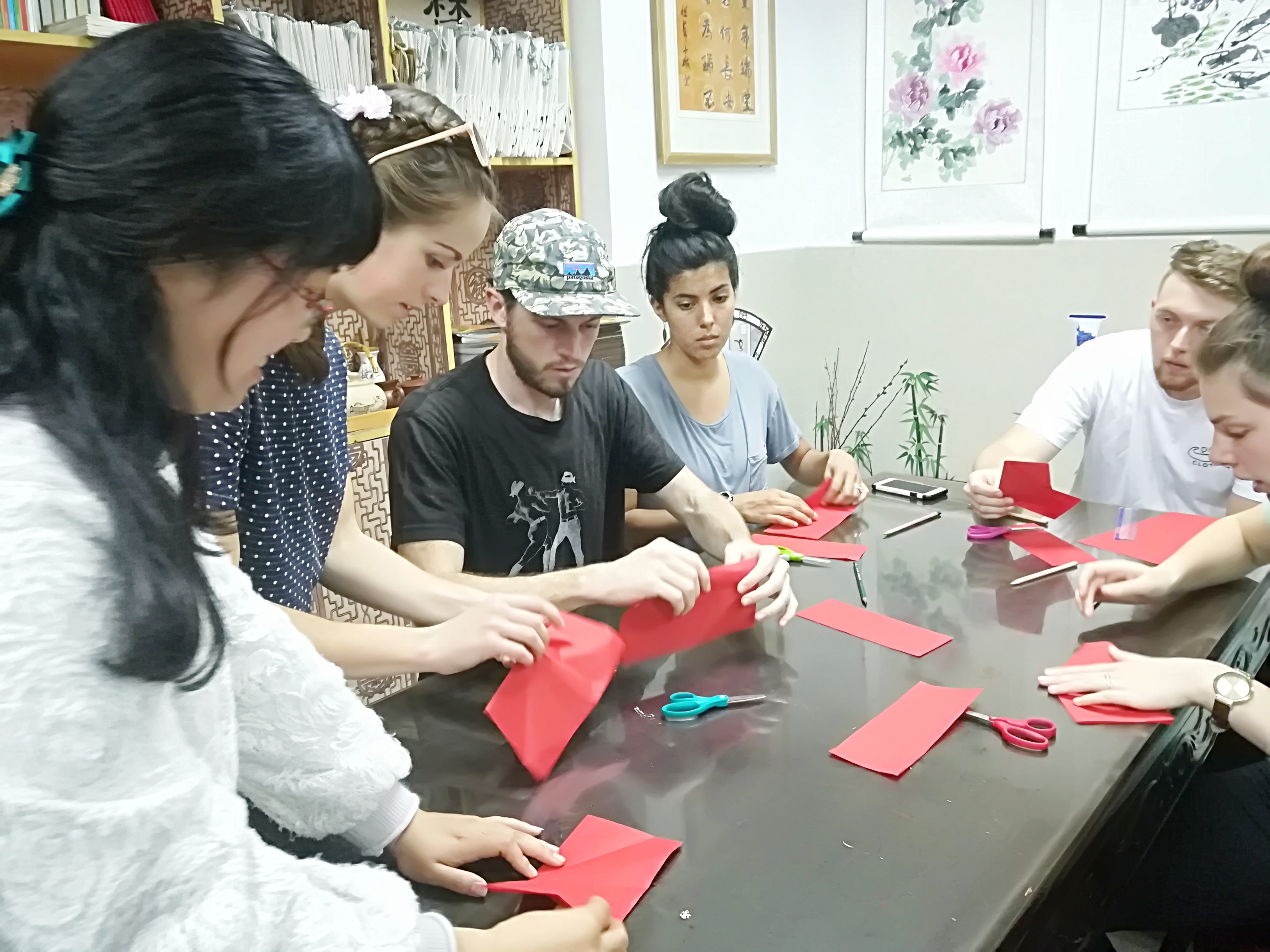 和外教一起探讨中国剪纸