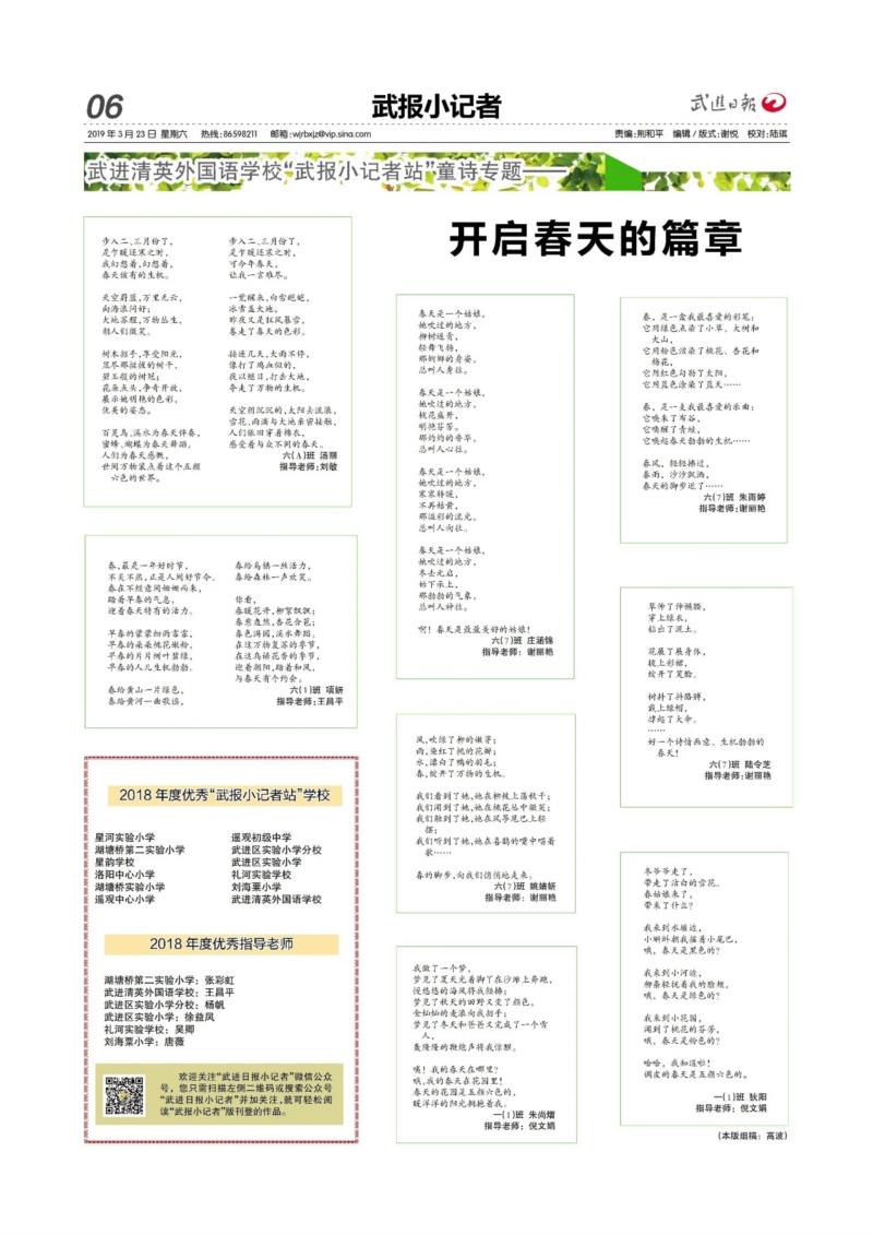 谢丽艳指导学生5篇习作发表《武进日报》