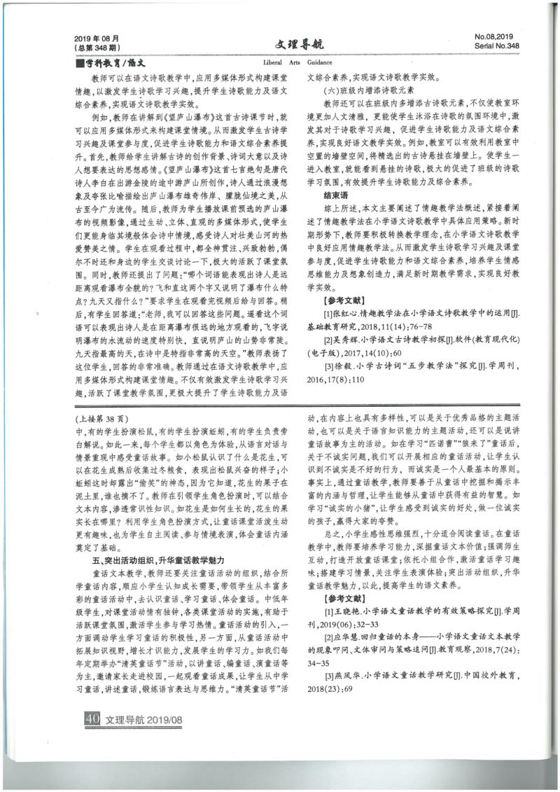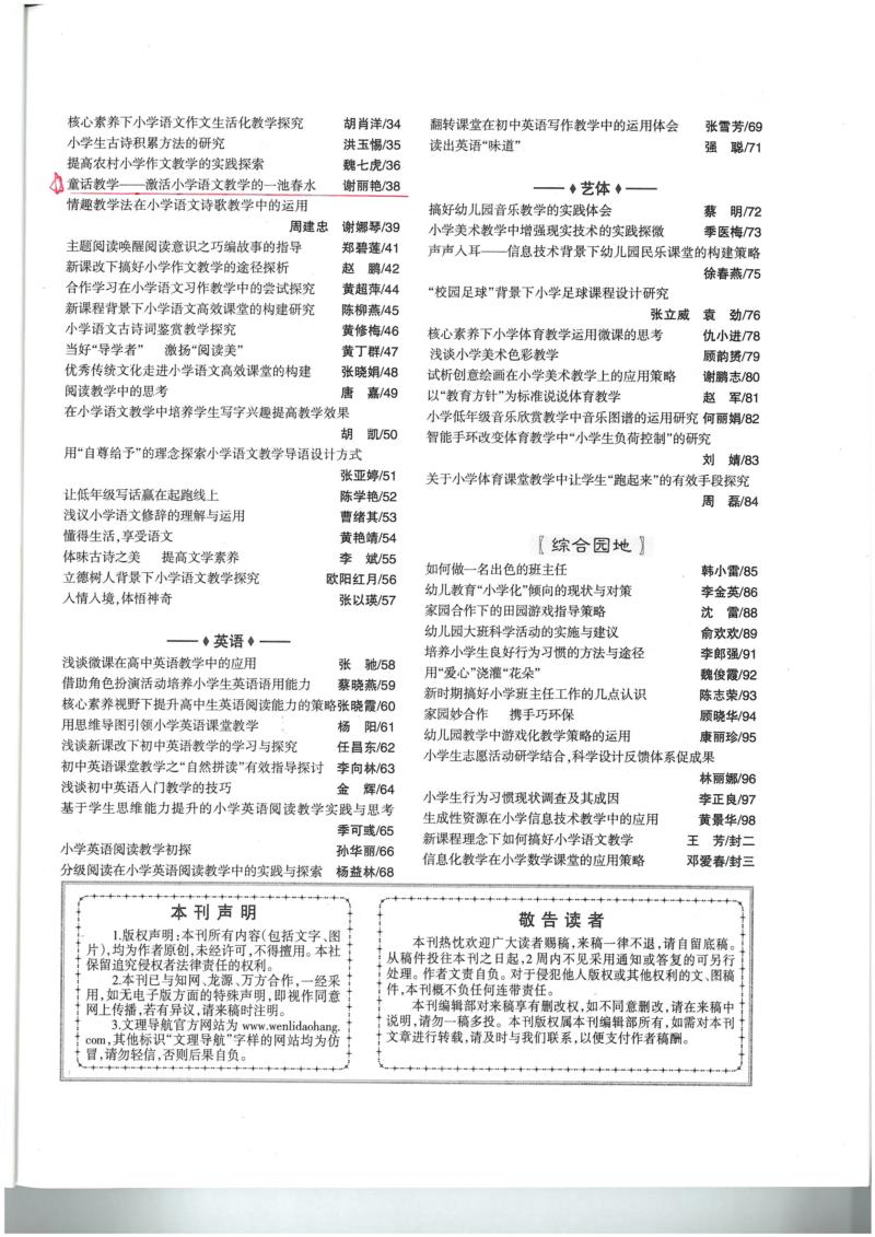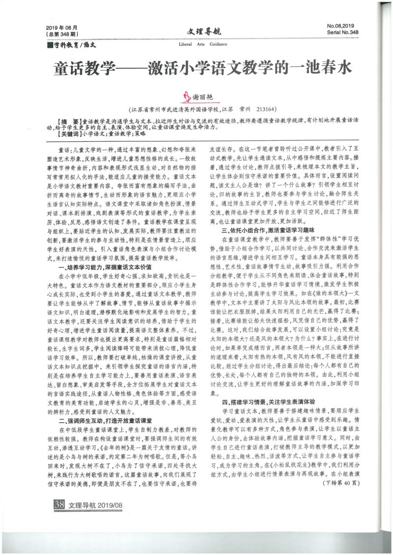 谢丽艳 童话教学--激活小学语文教学的一池春水(省级论文发表《文理导航》)