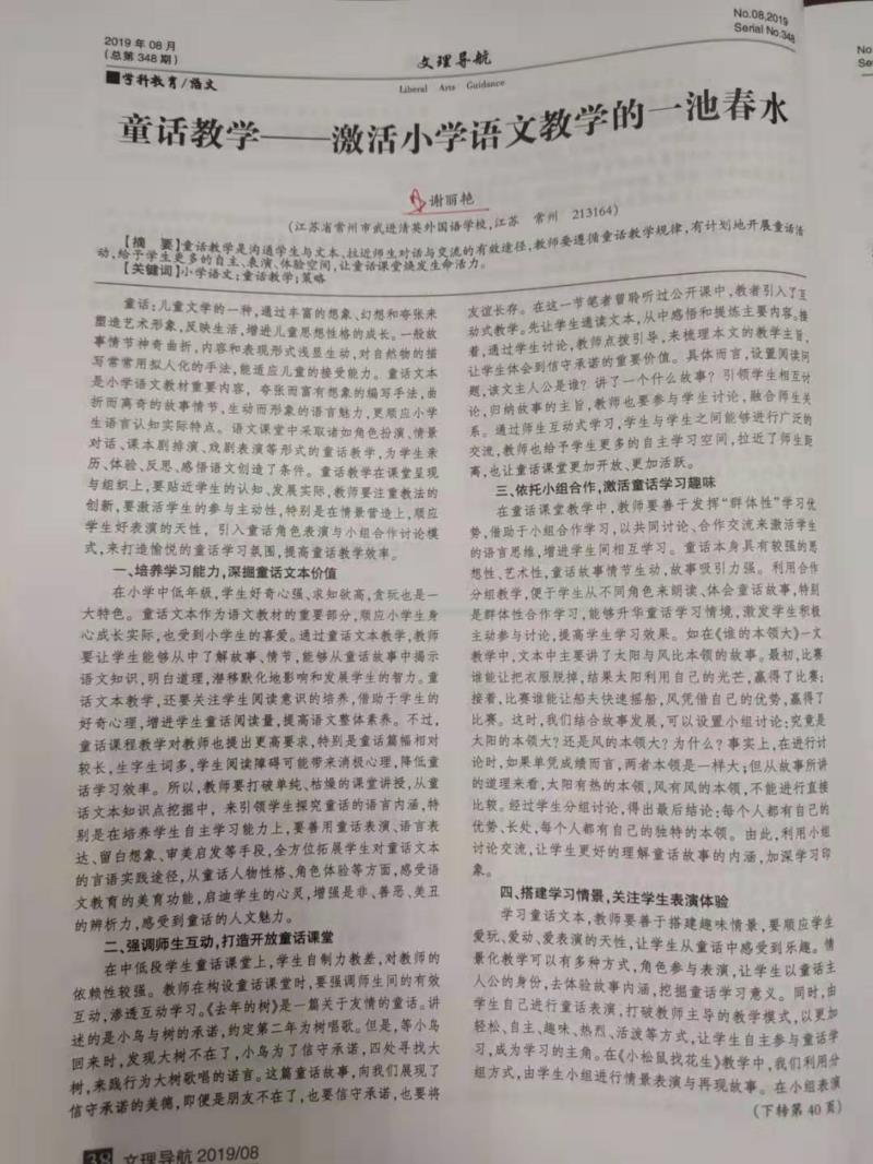 谢丽艳老师《童话教学---激活小学语文教学的一池春水》