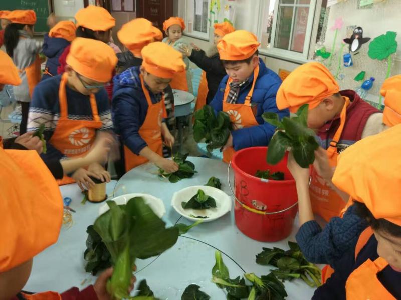 清英一直关注如何让儿童的潜力最大限度地调动起来并加以实现,以及人的内部灵性与可能性如何充分生成。在儿童地球村每月一度的阿福童日活动中,灵感山谷社区(三B班)教室摇身一变成了充满色香味的“甜蜜菜园”,孩子们分为“拔菜——运菜——择菜——洗菜——捆菜——卖菜”等6个经营团队,从单纯的物品买卖走到了更加系统,更加产业化、链条化的经济生活之中,并根植于儿童的社会经济场景中,与学科课程进行融合来相互支撑,为孩子的生命成长增加底色。