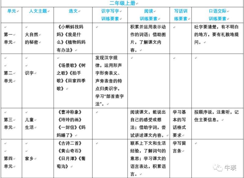 统编版二年级语文各单元语文要素梳理与整本书阅读推荐