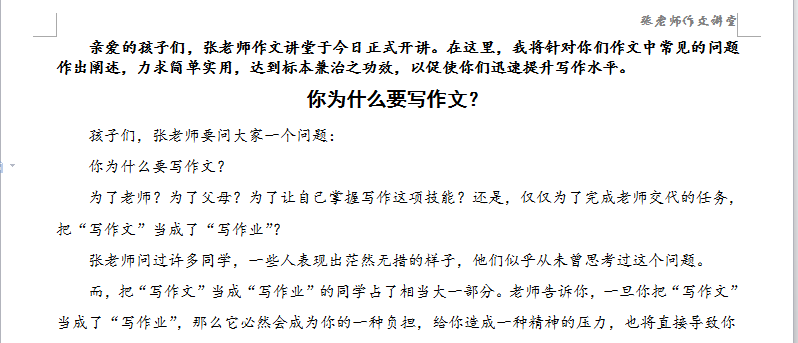 “张老师作文讲堂”开讲