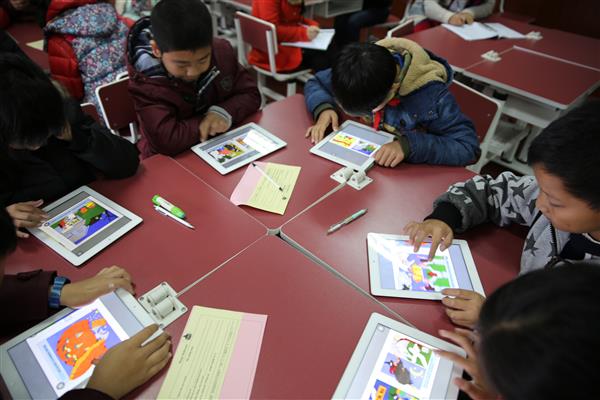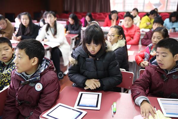 随后,朱亚燕老师与大家分享了她在这节课的选题、设计、磨课过程中对E环境下的小组合作探究学习的思考和收获。朱老师就英语课使用“一对一数字化学习”的点滴探索向清英的英语老师们进行了分享。加入了清英英语团队“苹果一对一”改革实验的她深刻地认识到,只有在研究了解学生的基础上,巧妙运用苹果软件,引导学生以“自主、探索、合作”为特征的学习方式,才能提高课堂的自主性和有效性。同时,她也谈及了为准备一节平板课不能“为平台而平台”,仍需要从儿童立场出发,遵循英语学科特点,设计教学活动,这样才能让平板技术更好地为课堂服务。