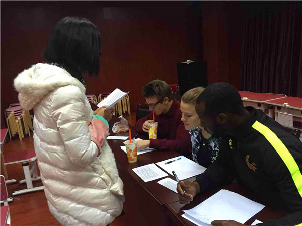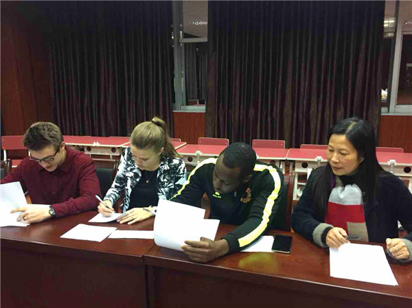 外教老师为了能更有针对性地给每一位英语教师制定培训计划,teacher Perry特意准备一份口语测试单,就Intonation、Voice和Fluency三方面为每位英语教师的口语情况进行测评与指导。测评结束后,外教对老师们给予了高度的评价,并且提出了中肯的建议。在整个培训过程中,中方老师们虚心听取外教给予学习英语口语的技巧和方法,用心感受异国历史、文化习俗的氛围,感受“说”好语言和掌握实际应用的技巧。本次活动中,老师们向外教们学习如何利用不同的重音和语调表达情感和态度,并养成英语思维习惯和用英语求知和交流的习惯。