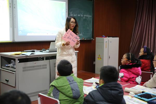 路瑾副校长介绍了清英英语课时安排——即6+1(6小1大),介绍了英语课程安排——两套教材(即Family & Friends+译林小学英语)同时进行互补教学。这就给清英教学提出了更高的要求:如何更高效利用资源?如何丰富学生词汇量、语言思维?又如何丰富学生的英语语言?