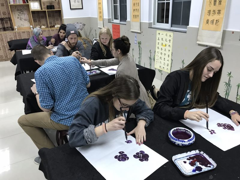 中华文化博大精深、源远流长。当我们翻开中国文化的历史,国画,这一国粹便闯进了我们的视线。国画文化包罗万象,渗透于景致格物,处世人道,凝聚着中华文化的精神气魄和美学智慧。为了让外教老师们更近一步接触国画的意境之美,感受国画字的独特魅力,11月25日,李勃老师在书法教室为一群“洋学生”上了一节特别的国画课。