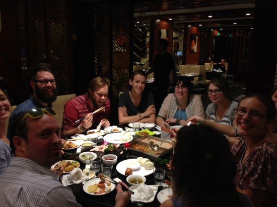 围坐餐桌,外教们品尝着中国的美味佳肴,体验着深厚底蕴的独特饮食文化,纷纷感谢学校为他们开设的一堂色香味佳的体验课程。席间,中、外教时不时学着菜肴的中文名或秀着西方的表达,常常赢得阵阵笑声。就是在这欢声笑语中,外教们纷纷在感受中西方饮食文化差异的同时,感叹着汉语言文化的独特魅力,正如外教Brad:“I like Chinese food very much and they are so yummy. I like Chinese even it’s so difficult.”。