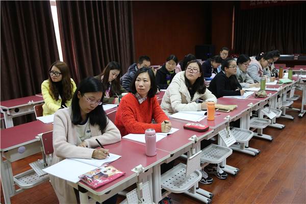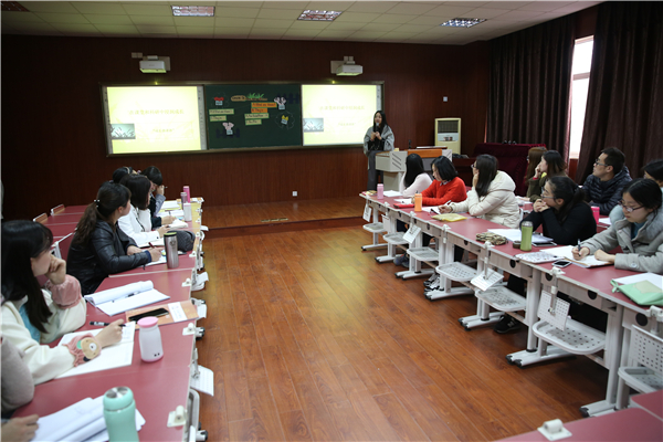 在观摩课后,戈向红老师作了长达两个小时的的专题讲座。而在这两个小时中,我们不断地在吸收着戈老师提升科研能力的妙法,不断地记录着她通过实践总结出来的发展规律。“课堂科研两不误,我们需要两条腿走路。”这是她向我们传递的最基本的信条。