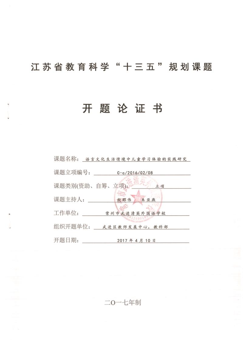 当前位置:武进教育课题网站 > 常州市武进清英外国语学校 > 课题列表