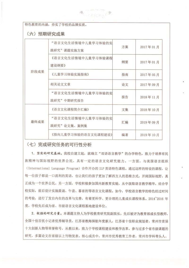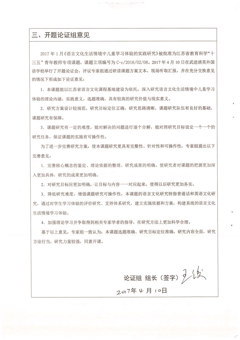 《语言文化生活情境中儿童学习体验的实践研究》开题论证书