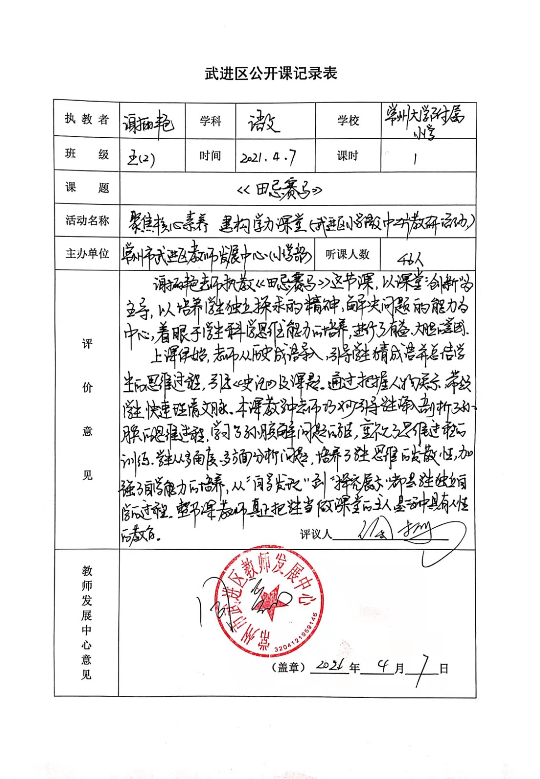 谢丽艳老师执教区级课《田忌赛马》研讨活动