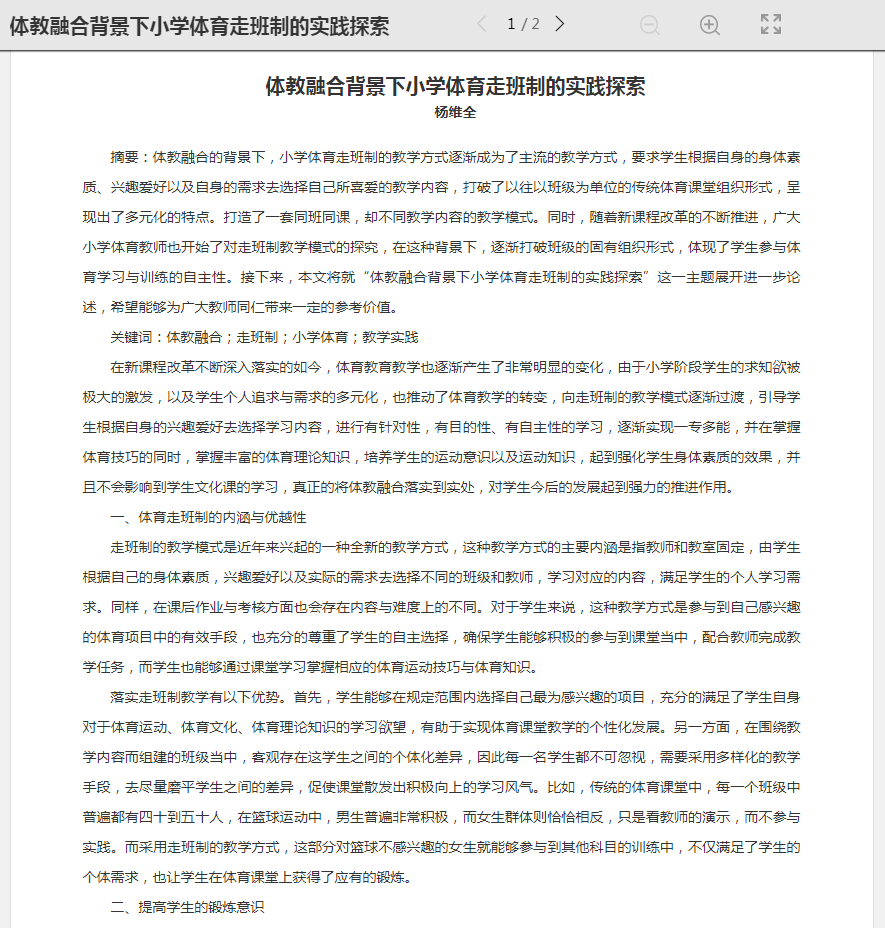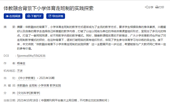 > 新体教融合背景下小学体育课程改革的行动研究